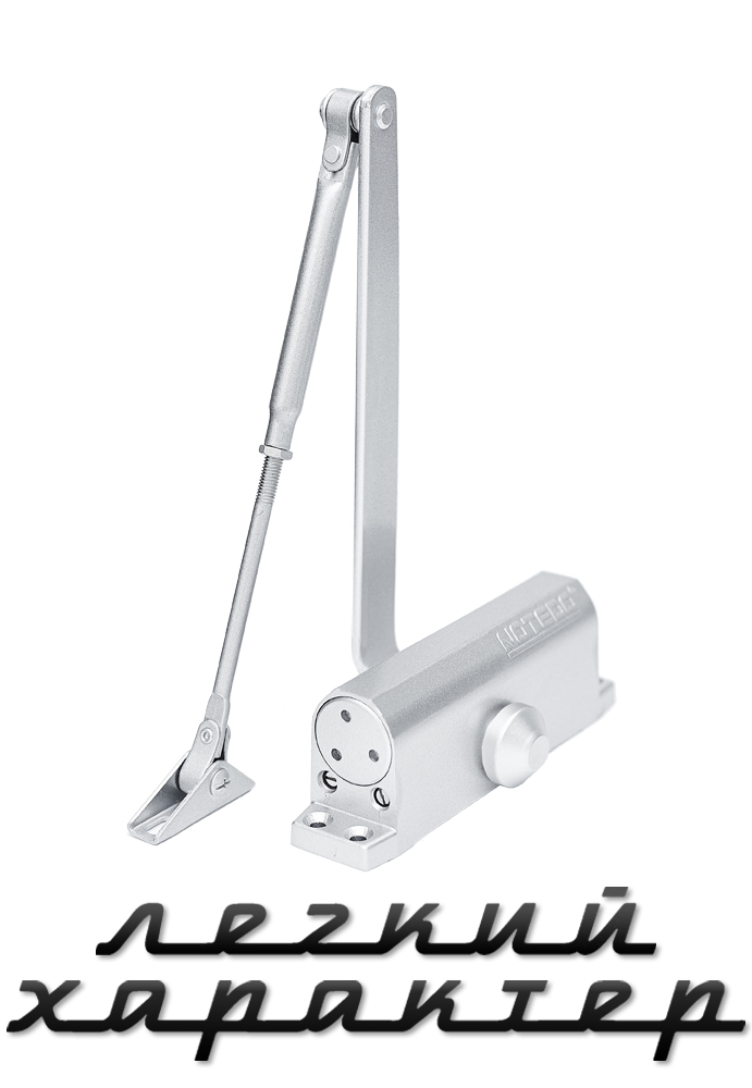 Дверной доводчик серии «Легкий характер» с повышенной эффективностью работы. Механо-гидравлический, двухскоростной. Функция «HOLD OPEN» — удерживание двери в открытом положении.